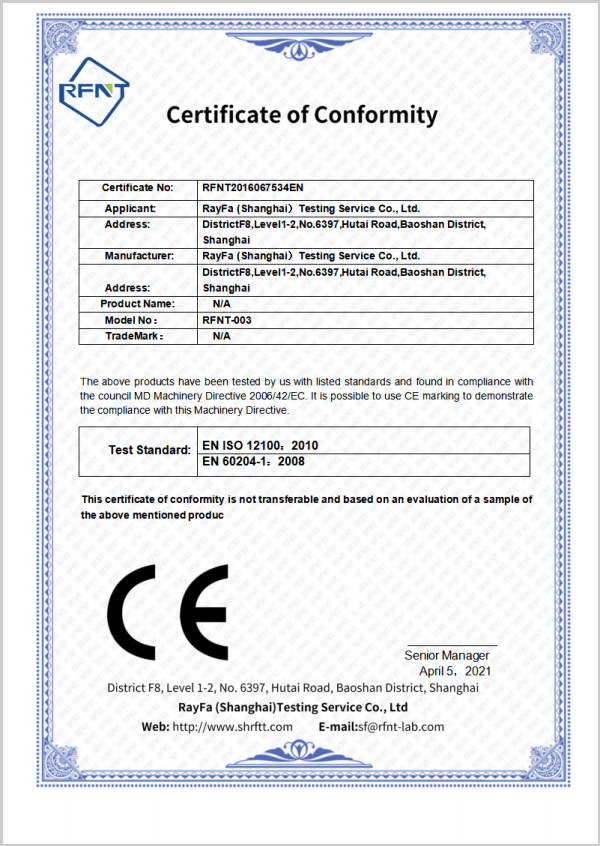 No.859 Shenglong Rd, Jiufu Development Area, JiuTing Town, Songjiang District, Shanghai, China